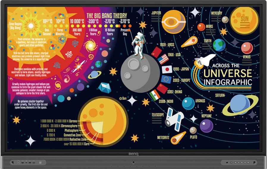 BenQ’s new education RP02 IFPs feature Zero Bonding Technology and Fine IR Plus for an upgraded touch resolution with a minimised contact height for more natural handwriting and significantly enhanced touch experience. Additionally, the RP02 series detects the touch/writing activity correctly even at high speed and furthermore avoids creating cursive handwriting when your hands or pens hover close to the surface of the IFP.