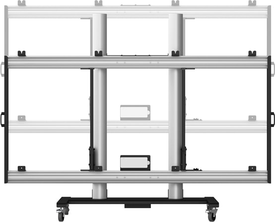 * Minimalist wheel frame with a concealed motor drive that smoothly raises the dvLED wall to the preferred viewing height
