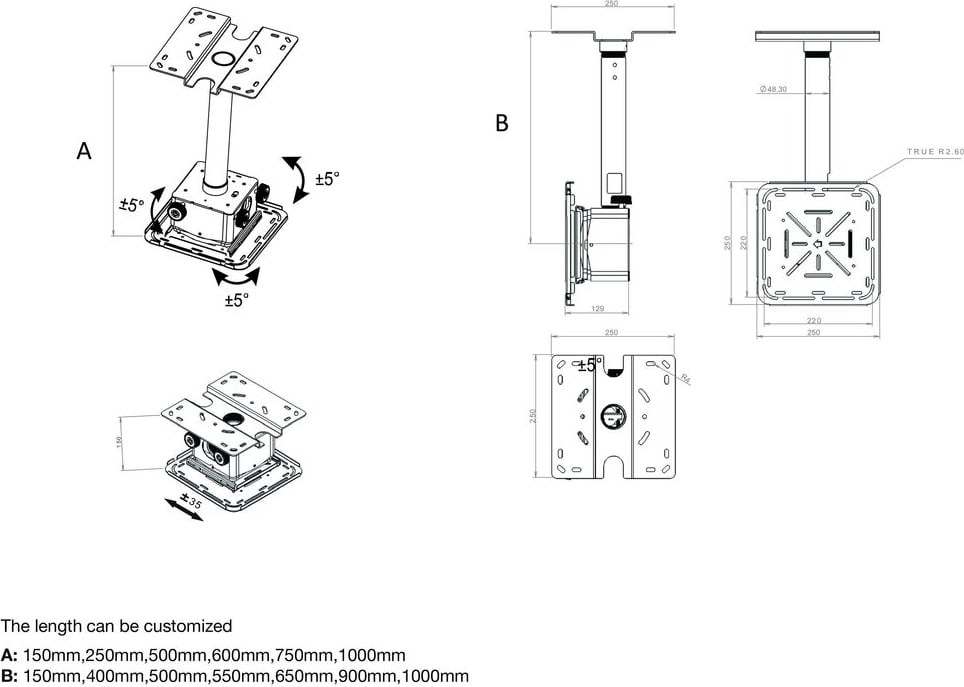 The built in fine tune adjustment technology provides a more simplified positioning. That way you can be sure to get a well-balanced position for your projector after installing it. This does not only save installation time but also make room for possible changes of what projector is being used or how your projection screen is positioned, perfect if you anticipate changing projectors in the future. The arms holding the projector are articulated and telescopic to adopt most projector models.