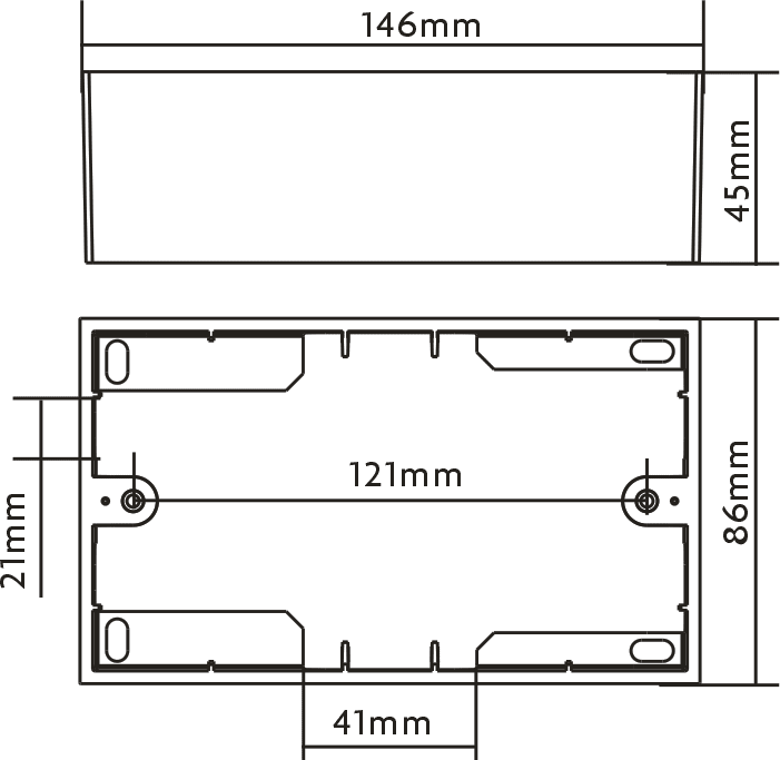 Standard double-gang UK surfacemount backbox (pattress) 45mm deep.