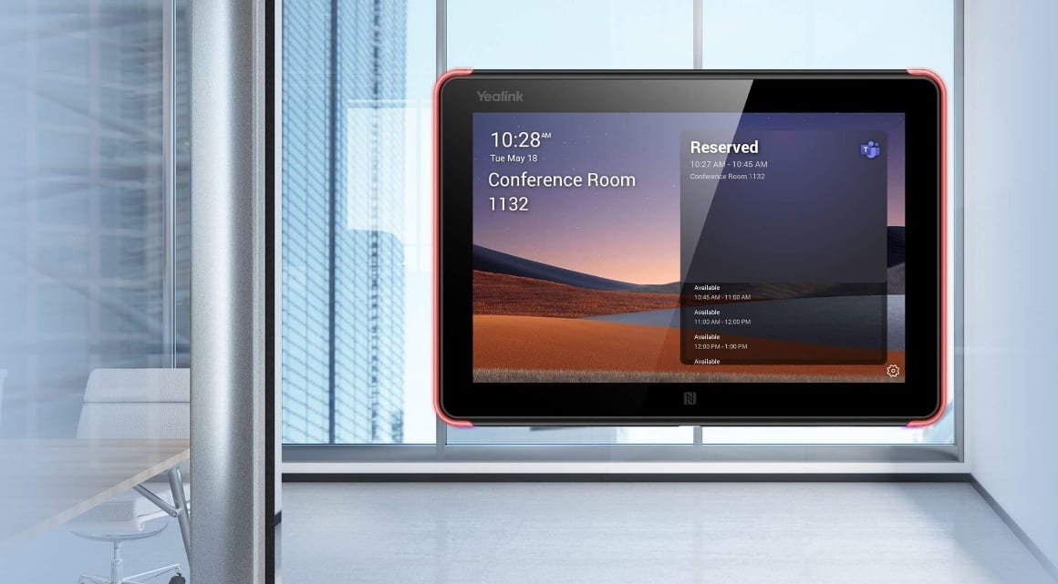Yealink RoomPanel is one of the dedicated Microsoft Teams devices with compact touchscreen and ideal for mounted outside the meeting spaces for displaying meeting details scheduled via Teams or Outlook 365 calendaring applications.